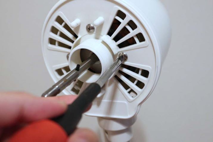 まずは、水洗いするパーツを可能な限り本体から取り外します。ほとんどの扇風機の場合、前後の網、羽根までは簡単に外すことができるはず。