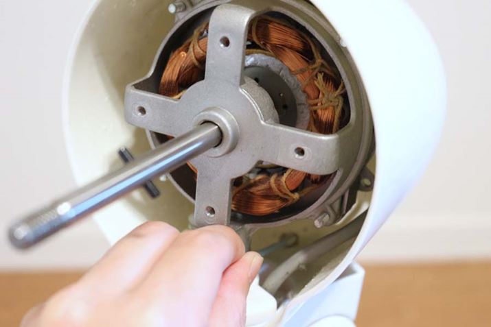 モーター部分は掃除機で吸えなかったので、隙間から綿棒を入れてそっとホコリをかき出しました。羽根の回りが悪い場合は、モーターの軸部分にグリスなどを注入する場合もあるようですが、今回使用した扇風機の動作には問題がないため、行いませんでした