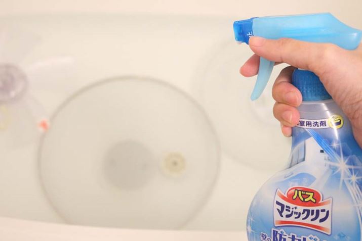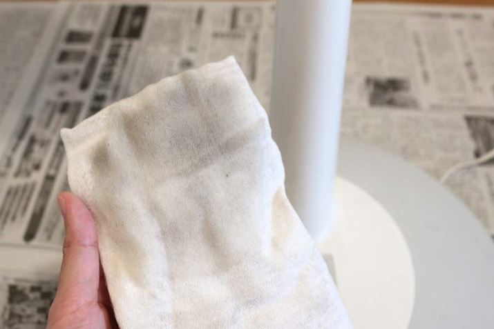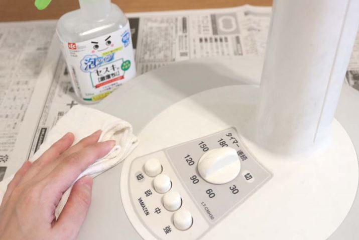 台の部分、特に操作ボタンの周りは皮脂汚れが目立ったので、皮脂汚れに適しているという「セスキスプレー」をふきんに含ませて拭いていきます。こちらも汚れの状態によって適した洗剤を選んでください