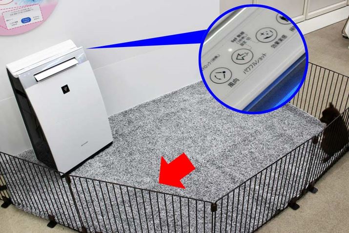 また、排泄物のニオイを消臭したい時には、うしろのルーバーを閉じ、高濃度のプラズマクラスターイオンを前方向のみで放出する「パワフルショット」運転が効果的。ペットがトイレをした場所にプラズマクラスターイオンを直接当てることで、より素早く消臭できます。