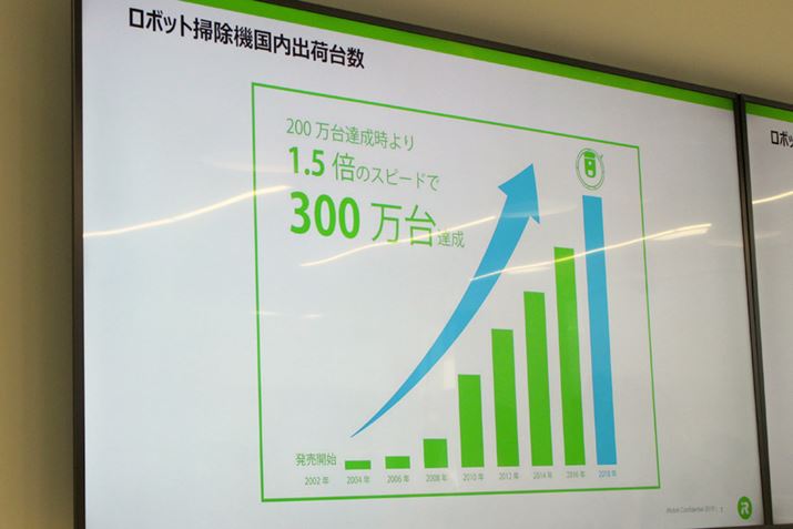 ルンバとブラーバをあわせた国内累計出荷台数が、2018年9月末までで300万台を突破。200万台を突破したときよりも、速いスピードで伸びているとのこと