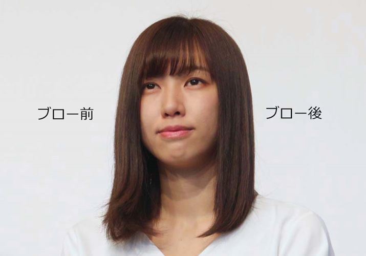 毛先のぱさつきが気になるブロー前(左)と比べると、ブロー後(右側)の髪はまとまりがよくかなりイメージが変わりました。「ブラシを使ったブローに入る前から、指通りがよく、しっとり感もあった」(奈良氏)とのことなので、プロの技を差し引いても、美髪効果が期待できるということですね