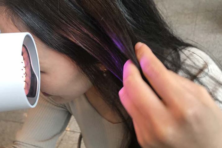 使用感は、風温の低いドライヤーとあまり違いはありません。音も一般的なドライヤーと同じくらい(か、ちょっとうるさいかも)です。ただ、手ぐしを使いながら乾かしていると、光が手に当たった瞬間にぽかぽかと気持ちよく、低温の温風と光の温かさがあいまって、とても心地よいと感じました