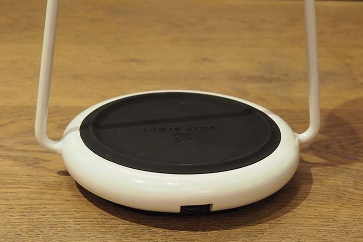 計量器にもなっている台座部分。USBのmicro-B形状のインターフェイスを搭載しており、充電することで最大20時間稼働できます
