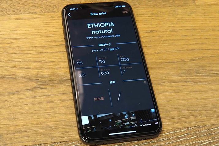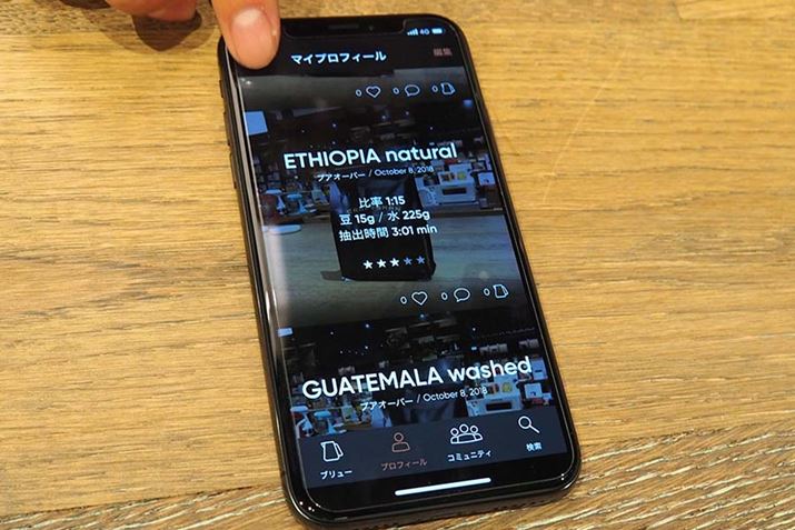 GINAの専用アプリ。今回筆者はエチオピアの豆をおすすめされたため、高城氏の過去のレシピからエチオピアの豆を使ったものを選びました