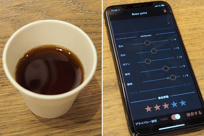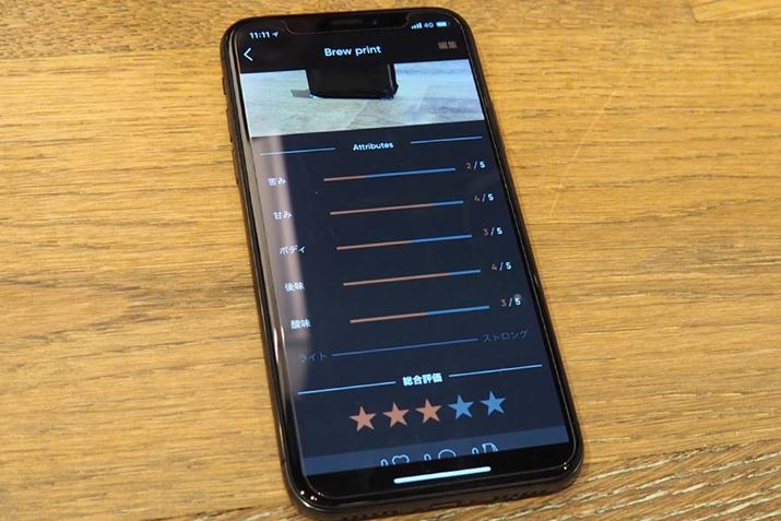抽出終了後は、試飲してアプリに感想を入力。全体的にフルーティーで軽く、香りのよいコーヒーでした。これが家で飲めるなら非常にうれしいですね