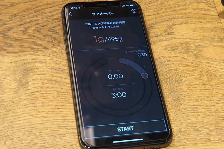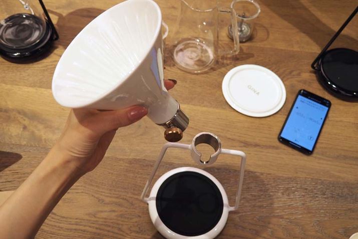 それでは、GINAのどこが「スマート」なコーヒーメーカーなのかというと、ひとつは前述したように台座部分に計量器が搭載されており、Bluetoothでスマートフォンと接続できること。専用アプリを使うことで、ドリッパーに入れた粉の量やお湯の量などを正確に計測することができます。