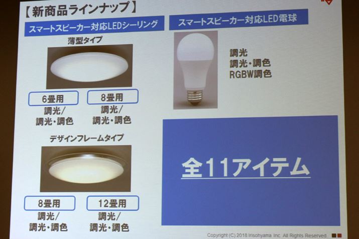 アイリスオーヤマから無線LANを内蔵したLEDシーリングライトとLED電球が登場。スマートフォンで遠隔操作できるほか、スマートスピーカーにも対応しているので音声操作も行えます。発表会で見てきた詳細をお伝えしましょう。