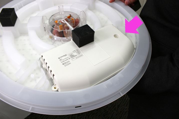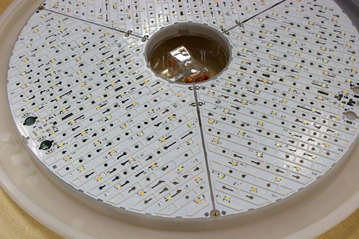 アイリスオーヤマのLEDシーリングライトは機能と価格の安さが魅力的ですが、基本性能も非常にすぐれています。他メーカーのLEDシーリングライトは基板が樹脂でできていますが、アイリスオーヤマでは錫メッキ鋼板を採用。樹脂製の場合、放熱のために基板とLEDチップの間に金属をかまさなければなりませんが、錫メッキ鋼板の基板には直接LEDチップを埋め込むことができるので、広く配置でき、ムラなく照らせるといいます。