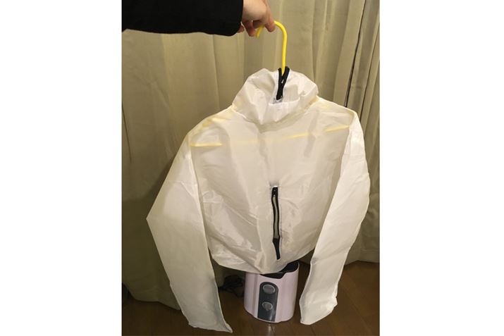 この商品はというと……服を乾かしつつ、シワ伸ばしもしてくれるシャツ乾燥機です!! それが本当なら、この季節の悩みをまるっと解決してくれる一石二鳥のスグレものですよね! では実際に使ってみましょう。