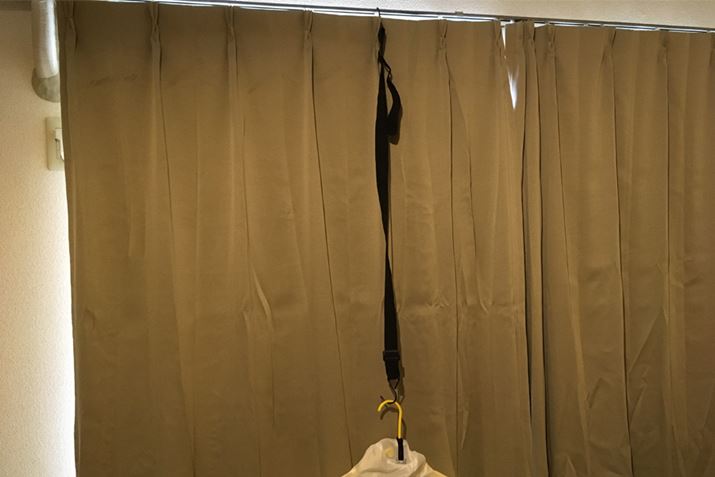 そんな人のためにお助けアイテムが入っていました。付属の吊り下げ用ベルトを使えば、高いところからでもちょうどいい位置でハンガーが掛けられます!