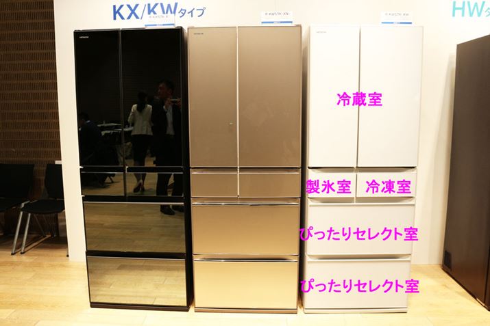 冷蔵庫の購入を考える際、真空状態で保存する日立の「真空チルド」や解凍せずにカットできる三菱電機の「切れちゃう瞬冷凍」といった各メーカー独自の保冷機能で選ぶ人も多いでしょうが、その前段階として、まずは冷凍室、冷蔵室、野菜室の容量やレイアウトをチェックするのが基本。今回、日立が発表した冷蔵庫「KX/KWシリーズ」は、冷蔵庫選びの基本となる容量やレイアウトを自由に設定できる構造「ぴったりセレクト」が採用されました。発表会で見てきた新発想の仕組みを紹介します。