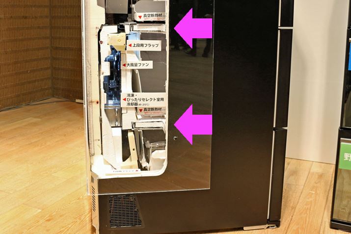温度帯の異なる部屋の温度を適切にキープできるように、各部屋の仕切り部分には真空断熱材を採用。断熱性能を保持しながら、薄壁設計で大容量を確保することも実現しました