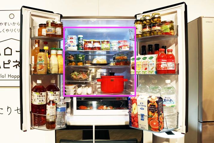 ライフスタイルの多様化が進む昨今、冷蔵庫の使い方も家庭によって大きく異なっています。日立が調査した使用実態によると、世代を問わず冷凍室にはたくさんの食品が入っているのに対し、野菜室に入れられている野菜の量は年齢が高くなるほど多く、若い世代ほど少なく、別の食品を入れている傾向が見られたそう。また、冷蔵庫は1度購入すると10年は使い続けることになる家電製品。その間に、子どもが独立したり、野菜中心の生活に変わるなど生活や食のスタイルが変わると、「もっと冷凍室の容量が欲しかった」「野菜室が真ん中レイアウトのものがよかった」と使い勝手に対する不満も出てくるものです。日立はそんな不満を、好きな保冷ゾーンに切り替えできる構造「ぴったりセレクト」で解決。冷蔵庫下部にある2つの引き出しに限られますが、設定を切り替えるだけで、2段とも冷凍室にしたり、上段は野菜室、下段は冷蔵室と分けて使うこともできます。