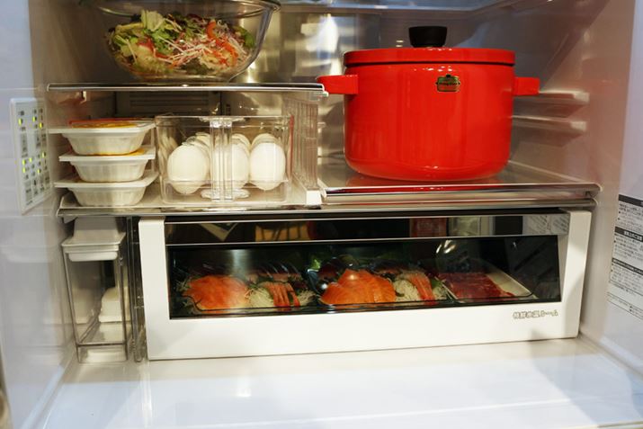 開口寸法も大きくなり、食品の出し入れもしやすくなりました。生食用の魚は3日間、加熱調理用の肉や魚は7日間、鮮度をキープできるとのこと
