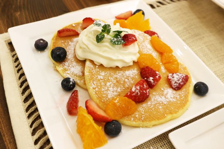 調理体験で作るハワイアンパンケーキのイメージ。フルーツや生クリームを載せて、この写真に近いようなものを作るそうです。もちろん、作ったものは食べてOK!