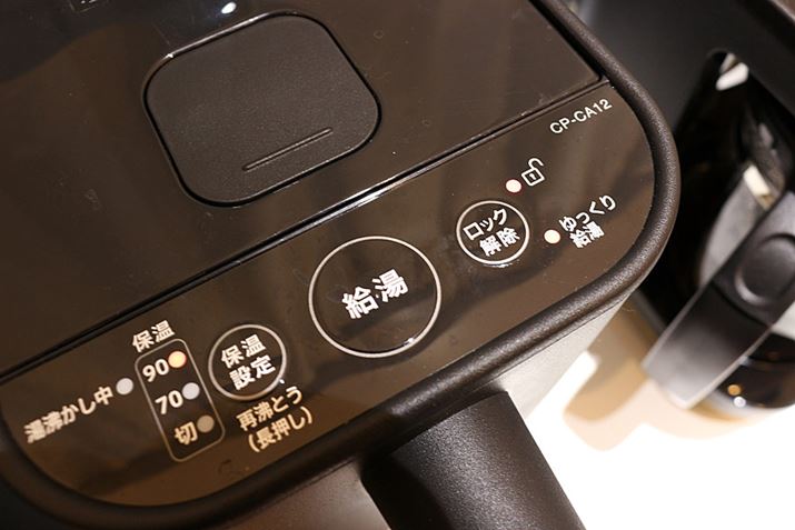 近頃、電気ケトルに押されぎみの電気ポットですが、常に温かいお湯をキープしておきたいこともあるもの。特に、赤ちゃんのいる家庭では、子どもをあやしながらミルク作りのために70℃のお湯を都度用意するのは大変という声も多いのだそう。そこで、開発されたのが“ケトルとポットのいいとこ取り”をした「CP-CA12」。90℃、70℃の温度で保温できるだけでなく、沸かせたあとに保温しないように設定できるのがポイントです。コーヒーカップ2杯分(1杯約120ml)が約2分で沸かせるので、普段は電気ケトルのように使い、来客時には電気ポットのように保温しておくという使い分けをするのもいいでしょう。
