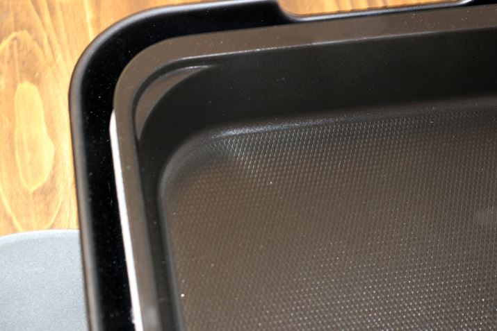 プレートにはチタンセラミックコートが施されており、耐久性もバツグン。プレート表面を凸凹とした仕上げにすることで、こげつきにくくしています