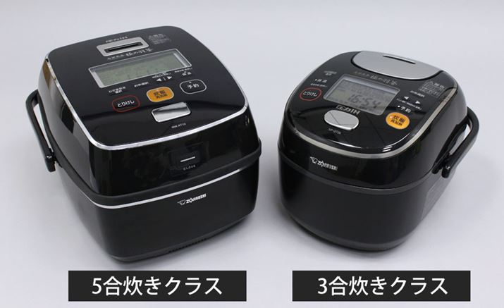 炊飯容量に比例して本体サイズも大きくなります。3合炊きであれば、一膳分を0.5合と考え、3食分を一気に炊飯する場合などを考慮しても十分に足りるでしょう