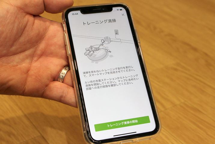 「Imprintスマートマッピング」を使うためには、最初だけ「トレーニング清掃」を行う必要があります。ルンバに間取りを認識させるために、家中を繰り返し走らせるステップです。大体3回で終わるとのこと