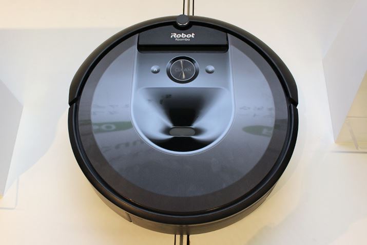 まずは、ベースモデルとなるロボット掃除機本体(i7)についてご紹介します。丸形形状などの基本デザインは、従来のルンバシリーズを踏襲しています。