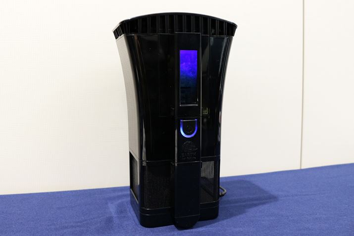 4年の開発期間を要したという「アース蚊がホイホイ Mosquito Sweeper」は、2019年2月20日発売(市場想定価格は19,800円/税別)。サイズは153(幅)×116(奥行)×266(高さ)mmで、適用床面積は〜12畳。蚊が好む黒色をボディに採用しています