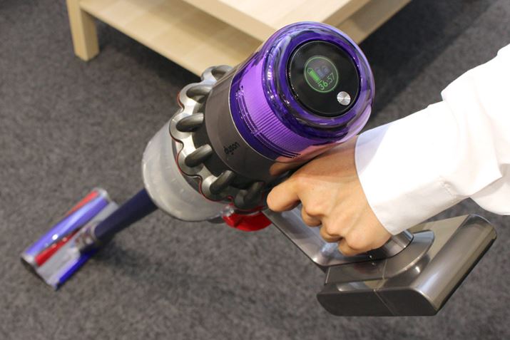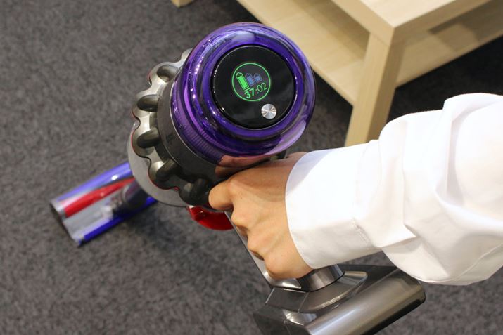 もうひとつ、V11の特徴として大きいのが、手元に液晶ディスプレイを搭載した点です。掃除機で液晶ディスプレイとはどういうことかと思いますが、このディスプレイに「残りの運転時間」を表示してくれる機能が付いたのです。