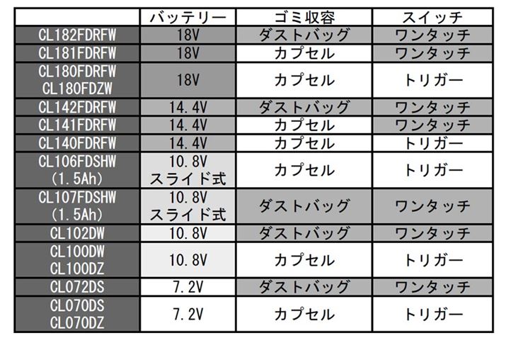 筆者が所有しているのは、「CL100D」(10.8V/カプセル集塵/トリガースイッチ)です。取説で確認してみたところ、現在の同社カタログモデル「CL100DW」と大体同じ仕様のよう。マキタ掃除機のベーシックモデルは、足し引きする要素がほとんど残されていないレベルに完成されているので、たかが10年くらいで古びたりはしないということでしょう。