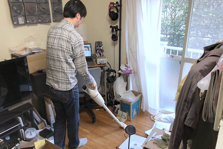 では最後になりますが、筆者が実際もう10年ほど愛用しているマキタのコードレススティック掃除機を実例に、現場=ヲタルームにおけるその使いやすさを見ていただきましょう。