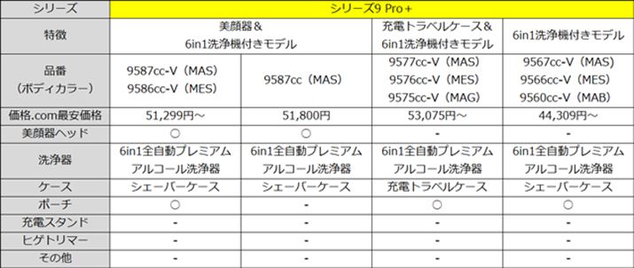 先述の美顔器付きモデルを含め、現時点のラインアップは以下のとおり。