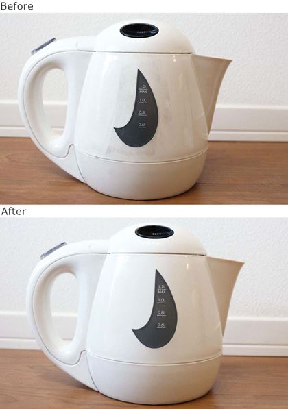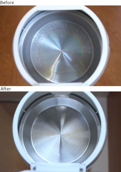 ぴかぴかに生まれ変わった電気ケトルのビフォー・アフターを比べてみましょう。