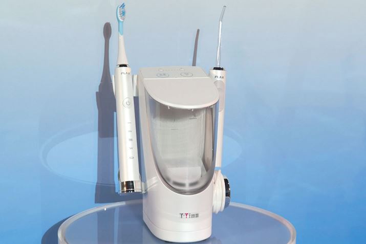 最近は飲料用水素水や水素風呂など、水素を利用したさまざまな健康・理美容製品が発売されています。そんな中、「水素で口の中のケアをする」という新発想の製品が、2019年5月20日に発売されるフラックスの「T-Time」シリーズです。「T-Time」シリーズには2モデルが用意されており、ひとつは水素水を使ったジェット水流でオーラルケアができる「ハイドロ・ジェットシステム」と呼ばれるウォーターピックに、電動歯ブラシがセットになった「T-Time BA(FLTM-19B)」(以下、T-Time BA)。もうひとつが、電動歯ブラシが付属せず、ウォーターピックのみの「T-Time BN(FLTM-19N)」(以下、T-Time BN)です。価格は、「T-Time BA」が31,800円(税別)、「T-Time BN」が24,800円(税別)となります。
