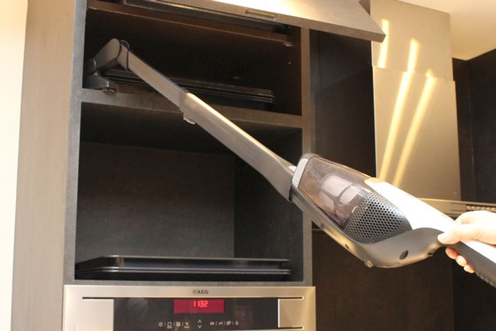 エルゴラピード・パワープロ プラスの場合、新しく付属する「スーパーロングノズル」と「アングルブラシ」を使えば高い場所の掃除もこのようにラクラク