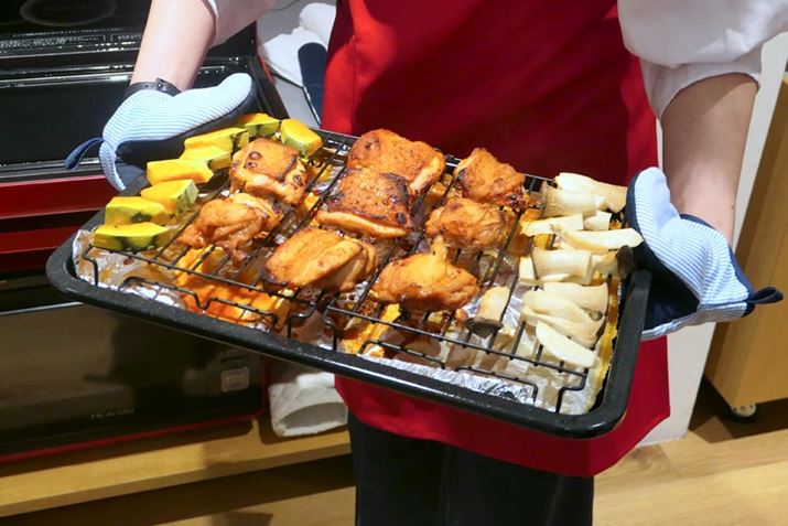 そんな中でシャープが掲げたテーマは、「毎日使えるヘルシオ」。ヘルシオの魅力といえば、過熱水蒸気によるオーブン機能で、ヘルシーな料理が作れることです。また、肉と野菜など異なる食材を一緒に調理しても、自動メニューで全てにちょうどよく火が通るという高機能性もウリ。そして新モデルでは、誰もがオーブンレンジをもっと使いこなせるよう、簡単においしく調理できる機能やレンジメニューが追加されました。