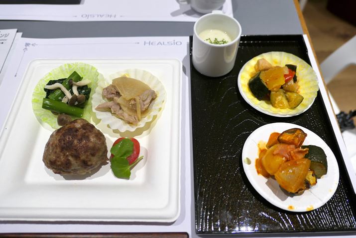 ヘルシオで作ったメニューのほか、シャープの「ホットクック」で作った「彩り野菜と鶏肉のトマト煮」「じゃがいもの冷製スープ」も一緒に味わいました