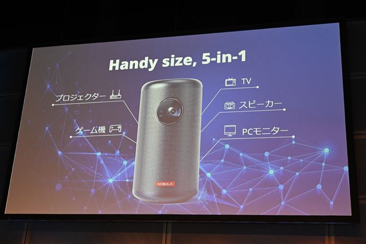 Android TVを搭載したモバイルプロジェクター「NEBULA Capsule II」。HDMIも備えており、ゲーム機やレコーダーの映像も投写できる