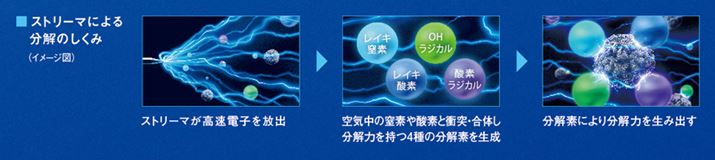 では、ダイキンの「ストリーマ」とは、一体どんなものなのか。やや難しい話になるが、以下の図を見ながら、そのメカニズムを解説しよう。