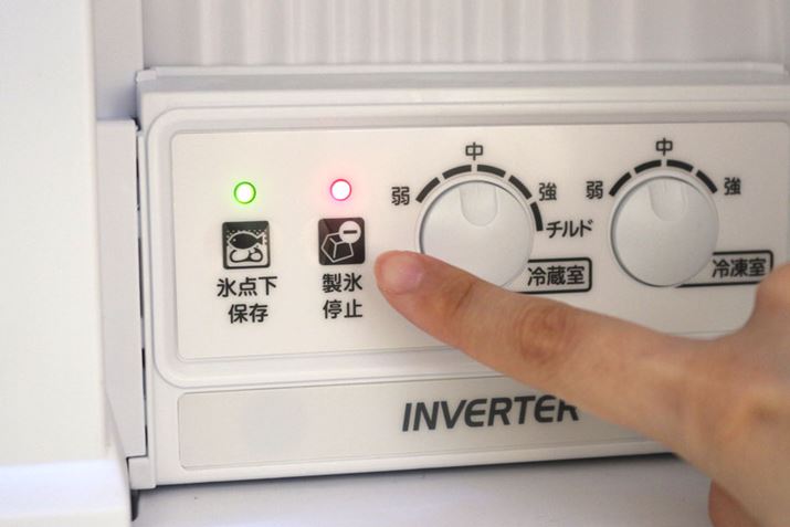 三菱:使わない場合は、製氷停止に切替えておいてください。再度製氷する場合は、1回目の氷は捨てて、2回目に製氷したものから使うことをおすすめします。