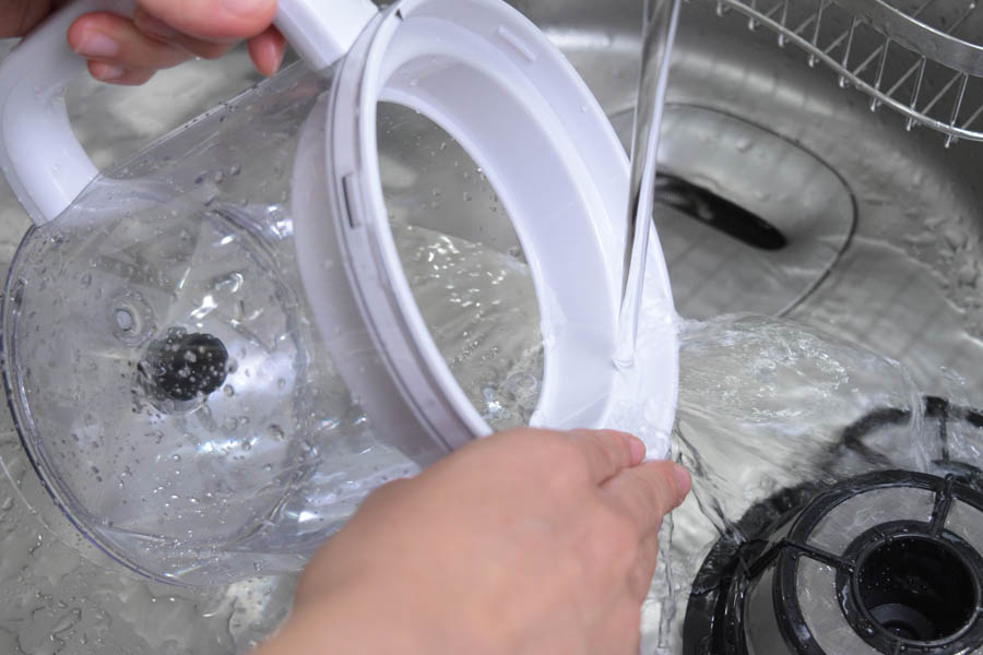各パーツを丸ごと水洗いできるのはうれしいが、ポットの上部のすき間に指が入りにくい点が少し気になった