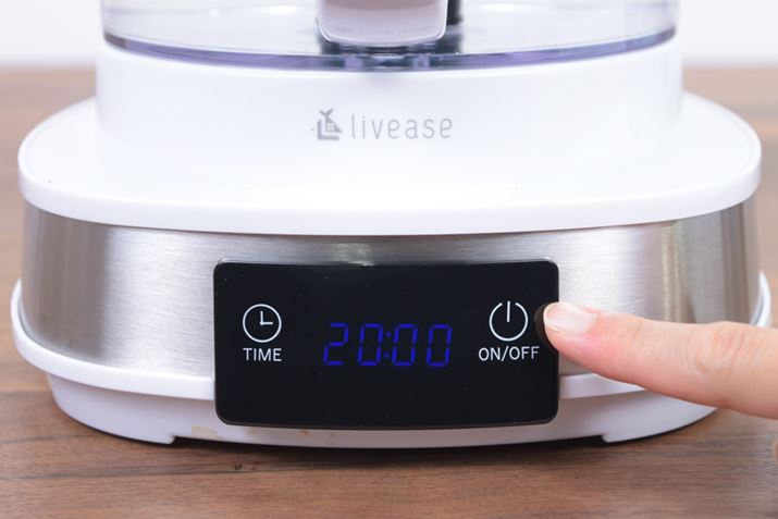 「TIME」ボタンで抽出時間を設定し、「ON/OFF」ボタンを押すと抽出が始まる。抽出時間は10〜40分間の間で、「TIME」ボタンを1度押すごとに10分単位で設定できる。ここでは、メーカー推奨の20分にセットした