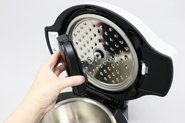 さばのみそ煮では、鍋の中をかき混ぜる必要はありません。洗い物を減らすため、まぜ技ユニットを取り外しておきます