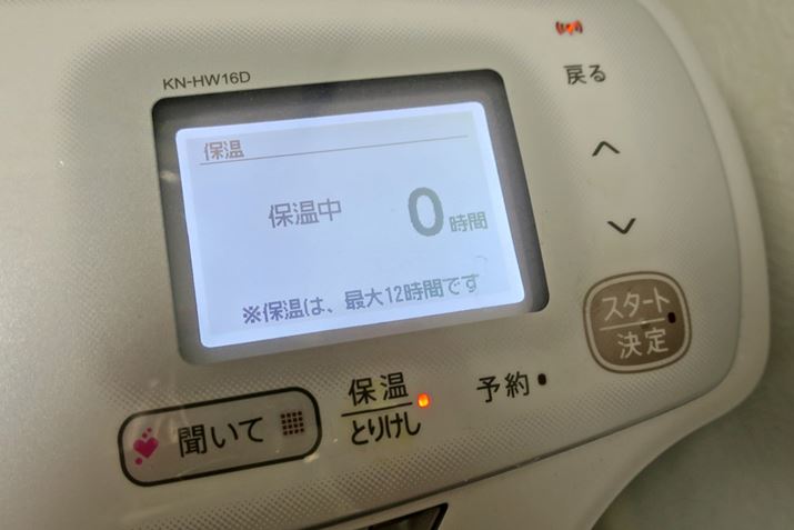 朝セットし、夕方帰宅した時にできあがっているようにセット。なお、予約時間は最大15時間設置できます
