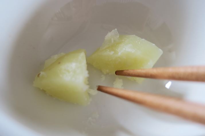 箸を入れてみると、スッと通るほどやわらか。食感はホクホク。無水ではありませんが、鍋にたっぷりの水を入れて茹でるよりも圧倒的に栄養素の流出は防げそうな気がします