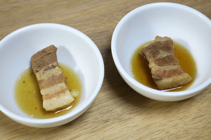 左が煮詰める前で、右が煮詰め後。汁の色が明らかに濃くないっています。実際に食べてみると、煮詰めたほうがより肉に味が染み込んだようで、 筆者の夫は煮詰めたほうが好きとのこと。家族で好みが違うようなら、半分は先に取り出し、残りを煮込むという方法もアリですね