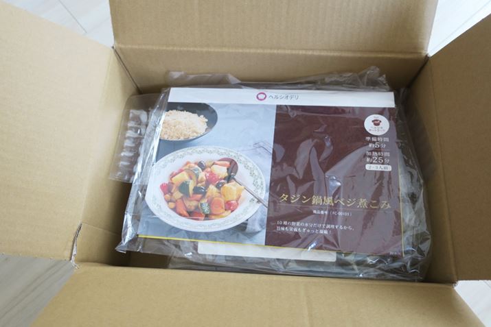 ヘルシオデリはクール便で届きます。賞味期限が1〜2日と短いので、気をつけましょう。ちなみに、筆者が頼んだのは、シェフが監修した「タジン鍋風ベジ煮こみ」です