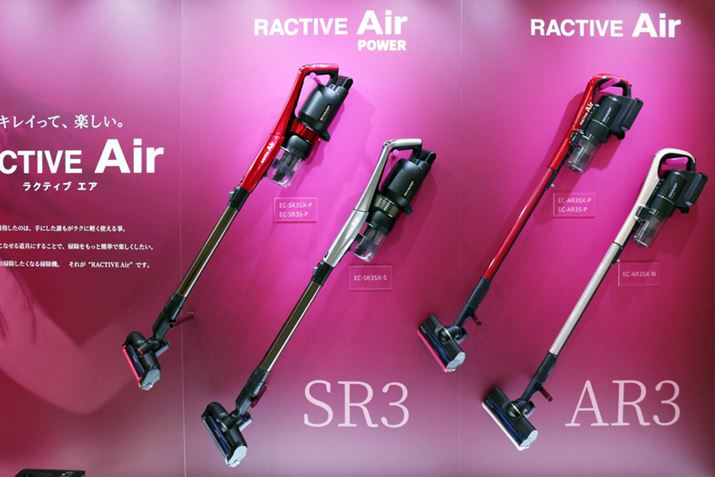 RACTIVE Air POWERには、同梱されるバッテリーやアタッチメントの数が異なる2機種がラインアップ。プレミアムモデル「EC-SR3SX」(写真左、中央/市場想定価格9万円前後)にはバッテリー2個、スタンダードモデル「EC-SR3S」(写真右/市場想定価格8万円前後)にはバッテリー1個が付属します。どちらも2019年7月25日発売予定