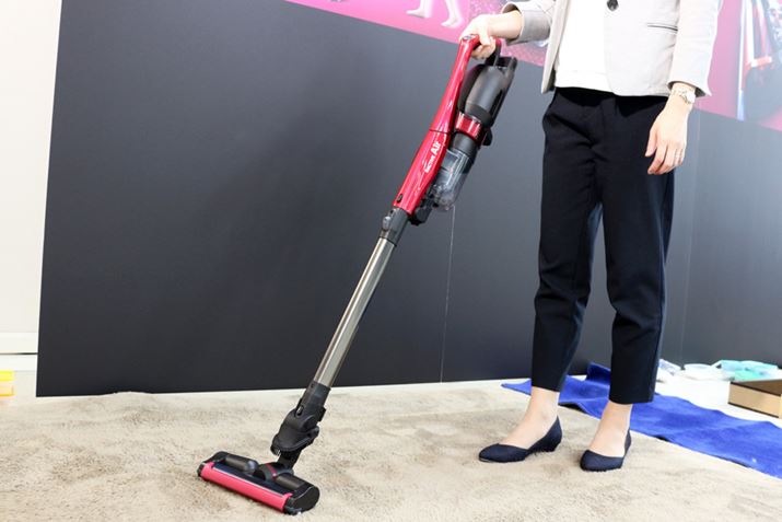 従来機(2018年モデル「EC-AR2SX」)よりも重量は0.4kg増したものの、フローリング掃除時の体への負担(筋負担)は約38%も軽減されているそうです。筆者も使ってみましたが、カーペットでも軽い力で動かすことができました。自動モードには、床質を感知してパワーを自動でコントロールしてくれる機能も搭載されています