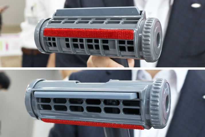 プレミアムモデルにのみ付属しているのは、「コンパクトふとん掃除ヘッド」「延長ホース」「はたきノズル」。コンパクトふとん掃除ヘッドは、普通の寝具を掃除する時と、ペットの毛がからみついたところを掃除する時で切り替えできるようになっています。