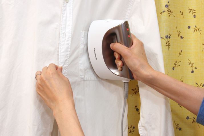 おろしたてのリネンシャツの折ジワも1分のスチームで目立たなくなります
