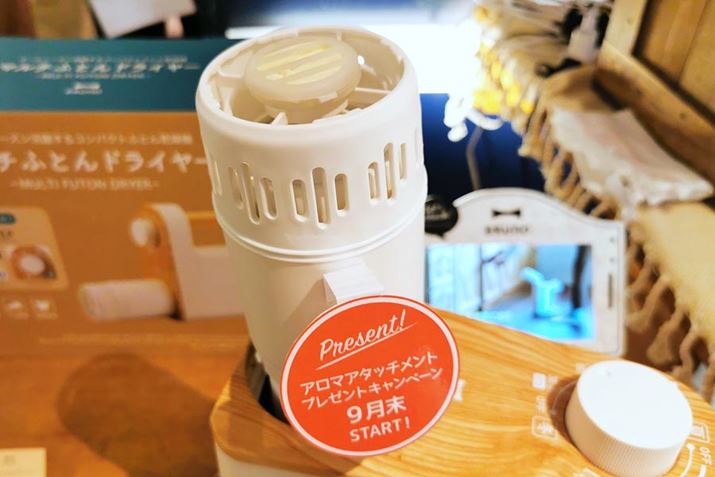 2019年9月末より、「マルチふとんドライヤー」を購入すると、同製品に装着することでアロマディフューザーとして使用できるようになる「アロマアタッチメント プレゼントキャンペーン」が開始されるというお得な情報も。「マルチふとんドライヤー」の購入を検討しているという方はお見逃しなく!